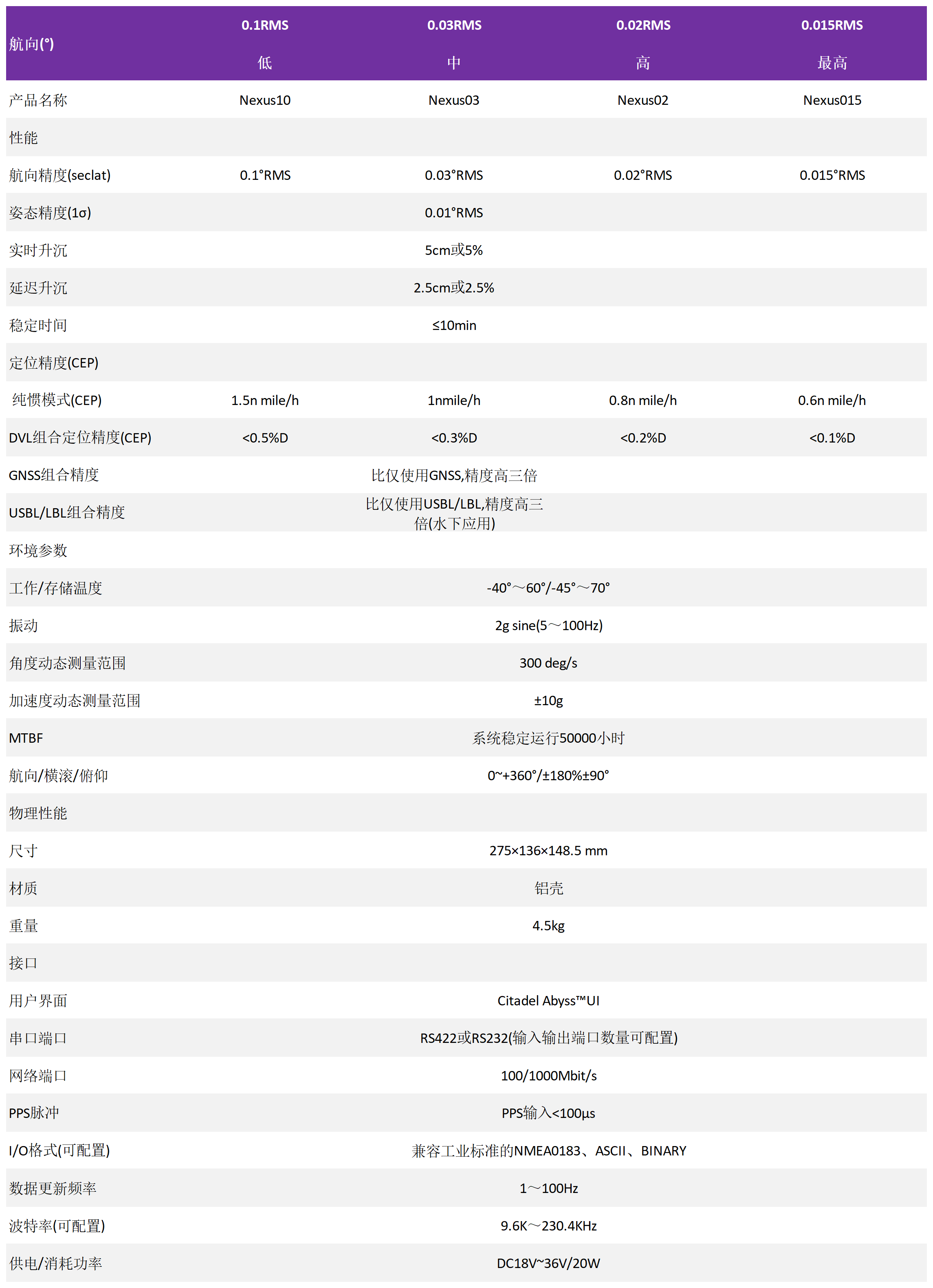 高精度惯性导航性能:航向精度优于0.015°RMS, 纯 惯位置精度优于0.6n mile/h