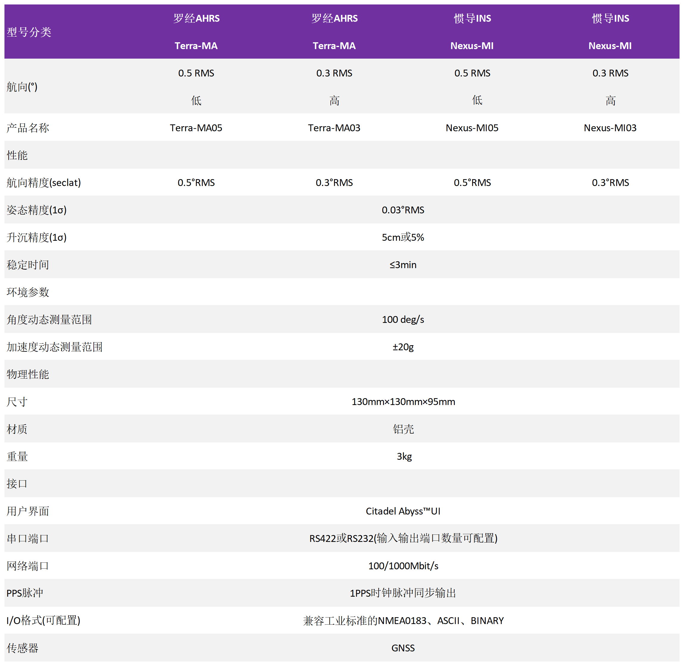 双型号设计:MEMS-AHRS 提供姿态、角速度等信息, MEMS-INS输出位置等多数据,支持连续导航